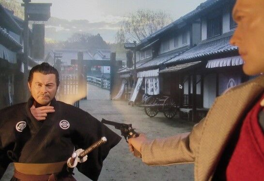 「おい、そこのサムライ。ここはどこだ。教えてくれねえか。それともこれを一発くらうか?」