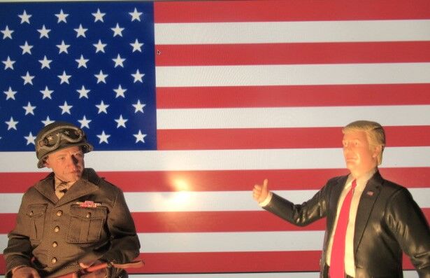 そのスピーチに感動したドナルド・トランプ氏が、感激のあまりステージへ上って、パットンに握手を求めるも、「お前、誰だ?」と将軍は怪訝な顔。