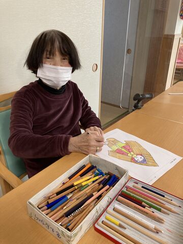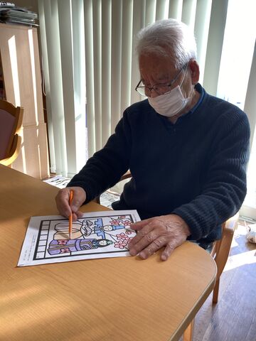 ある日の余暇時間、『塗り絵』をして過ごされました。