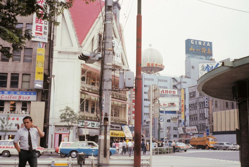 日本の一枚目は銀座八丁目の黒川紀章が設計したマンションな。各部屋がブロックになっていて、積み上げてある。この頃の黒川紀章は外車一台ぶんのスペースと銭湯ごあれば生きて行けると主張していたのだから、とんだ黒歴史、黒川だけに。