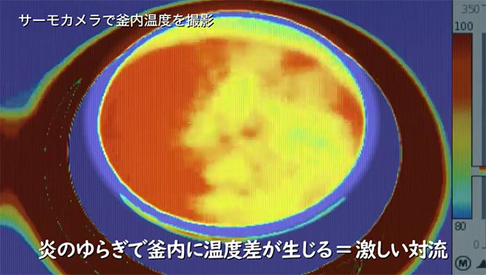 そのため、すべての場所に常に一定に熱が加わっているのではなく、あちこち交互に火が強まったり弱くなったりしながら加熱されるのである。