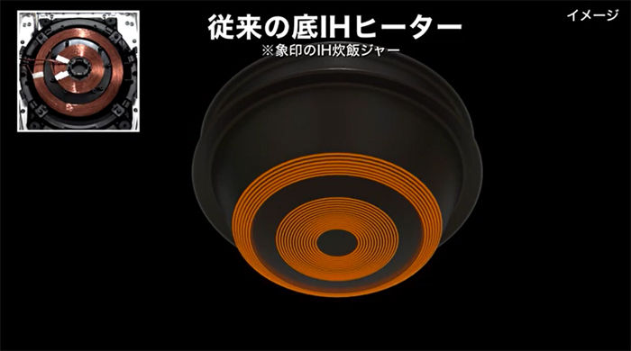 しかし、今までの炊飯器は、底を常に均一に加熱していた。