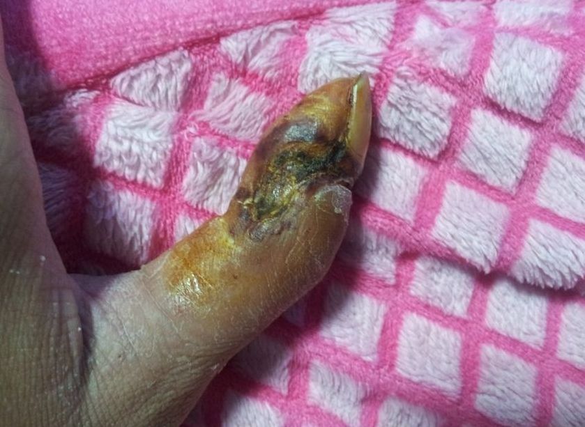 壊死は止まったが、手術で腐った部分は、すべて取り除いたため、指の皮膚が再生しなければ、移植しなければならないという。