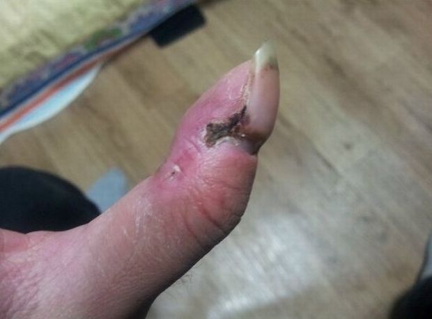 早く治療しなければ、手が腐って切断しなければならないところだった。