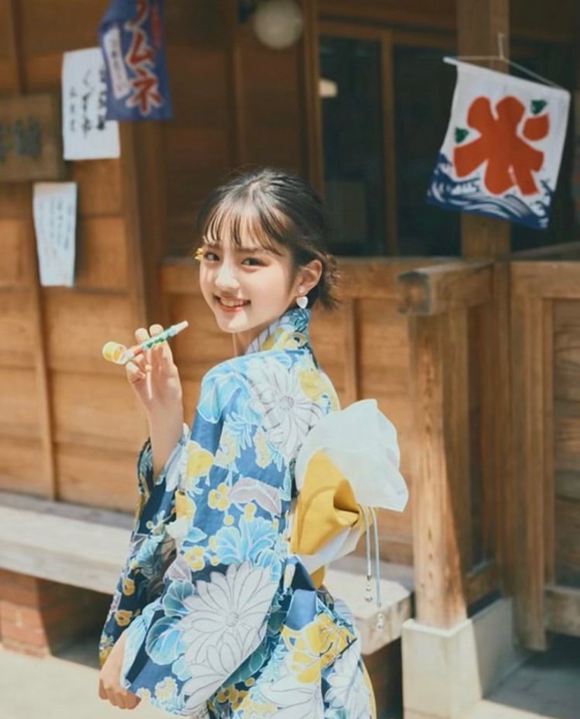 浴衣のツーショット、画像の加工の仕方がなんか昔の映画ポスターかなんかみたいな大時代な感じがする