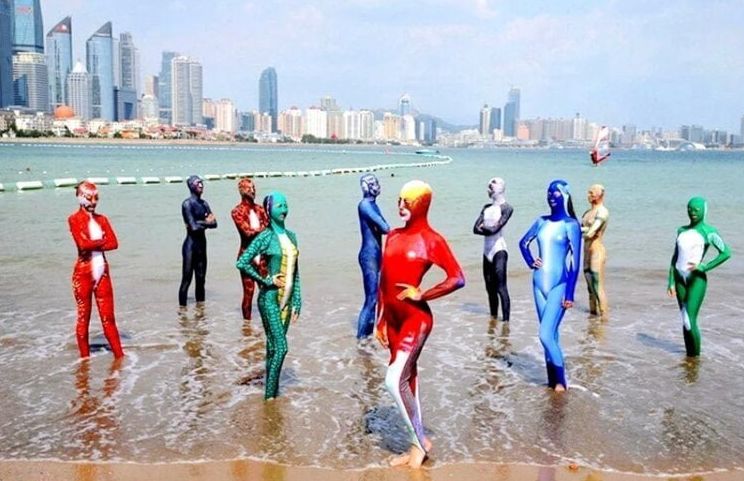 あそこまでしないと防御出来ない何かがあるんだろ。中国の海水浴場には。