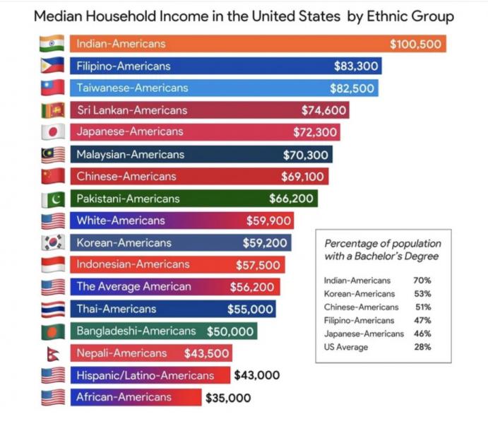 データではユダヤ系と日系人は高収入の割合高かったと思う