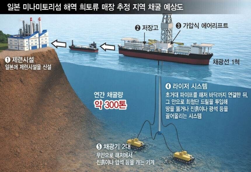 日本の科学者は韓国人が考える程度の事は検証して採算性検討に入ると言う事だ。南鳥島のレアアースは放射能を含まない、泥なので粉砕不要、常温の弱酸性溶液で抽出可能等々精練に有利な条件が揃っている。其れに海底6000mで稼働するロボットも開発され正常に動いたと言う事だ。従って精練の際に危惧された環境汚染に対して非常に有利だと言う事だ。