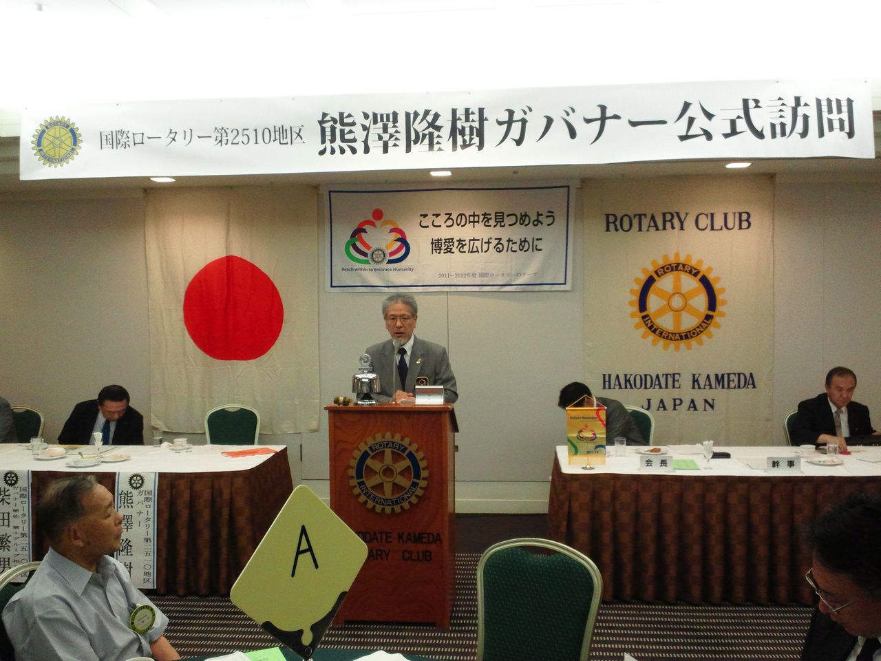 本日は、当クラブへ国際ロータリー第2510地区ガバナー熊澤隆樹氏が訪問され、当クラブの事業などの活動に感心をされ、また、地区のテーマやガバナーの考えを話され会員の皆様は真剣に耳を傾けて聞き入って公式訪問を終了いたしました。