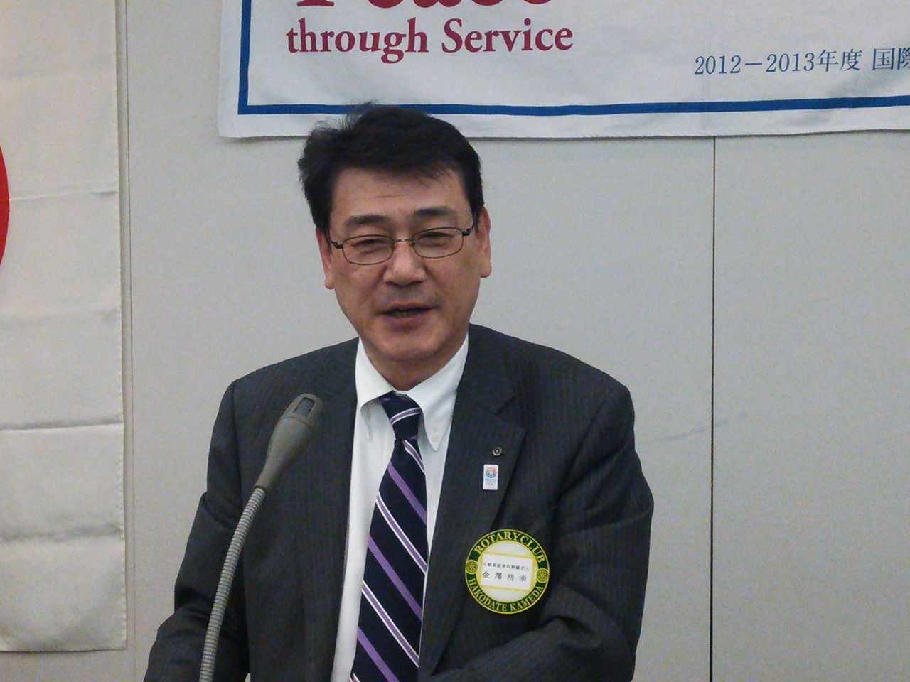 今日は、4月14日に岩見沢でおこなわれた第2510地区協議会の報告を次年度会長の金澤会長エレクトが話されました。