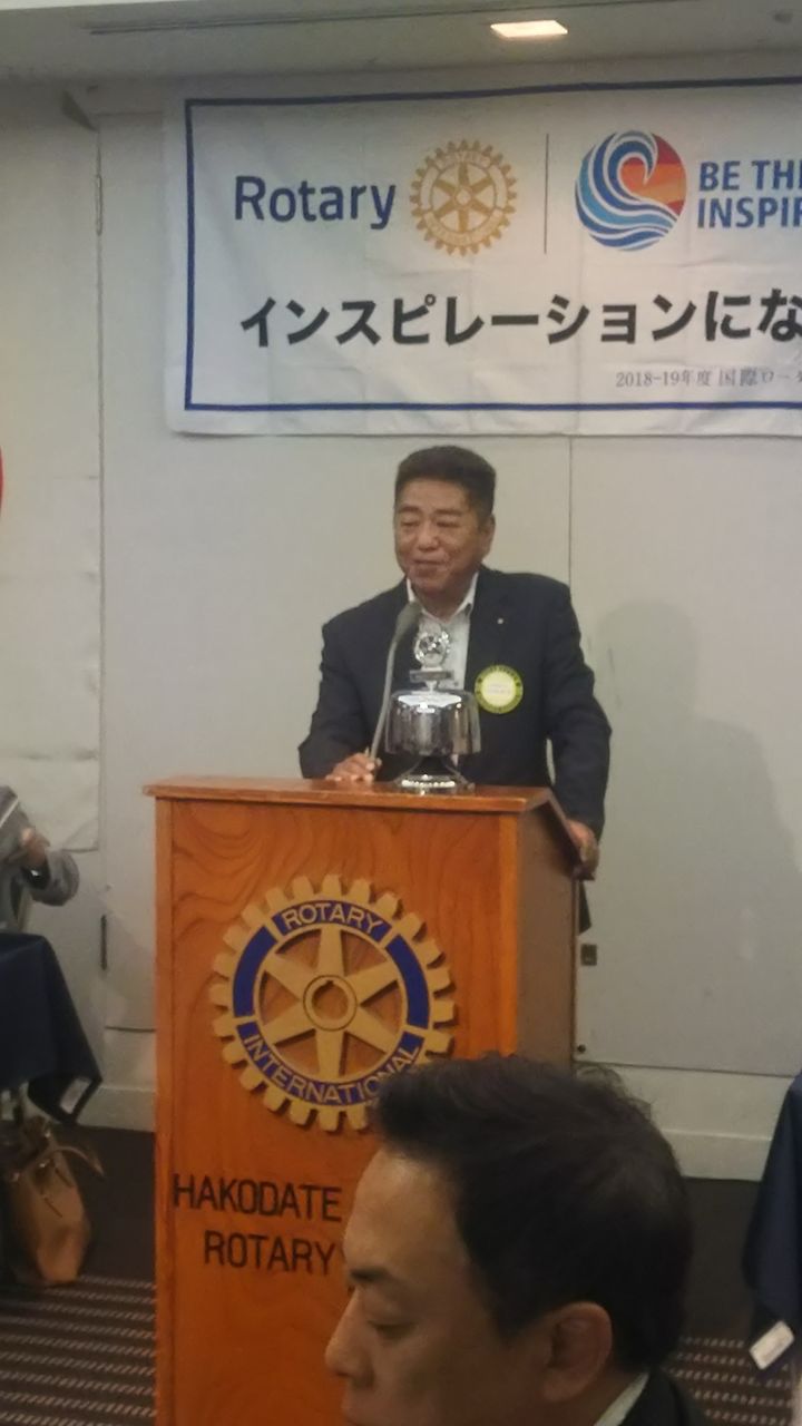 今年度最初のホーム例会で、木戸浦会長の就任挨拶、とても緊張してましたが、これから1年の抱負を話していただきました。