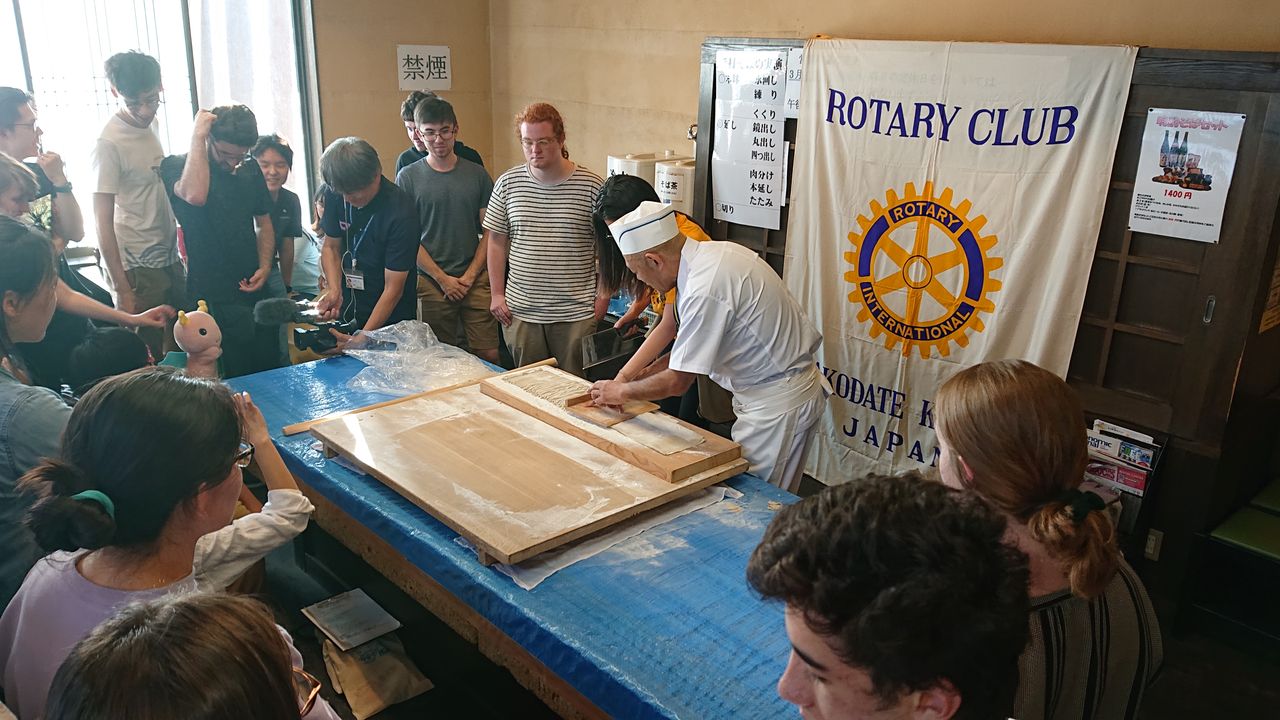 今日は、前田会長年度になって初めての奉仕活動(国際奉仕)になります「そば打ち・餅つき体験」です。