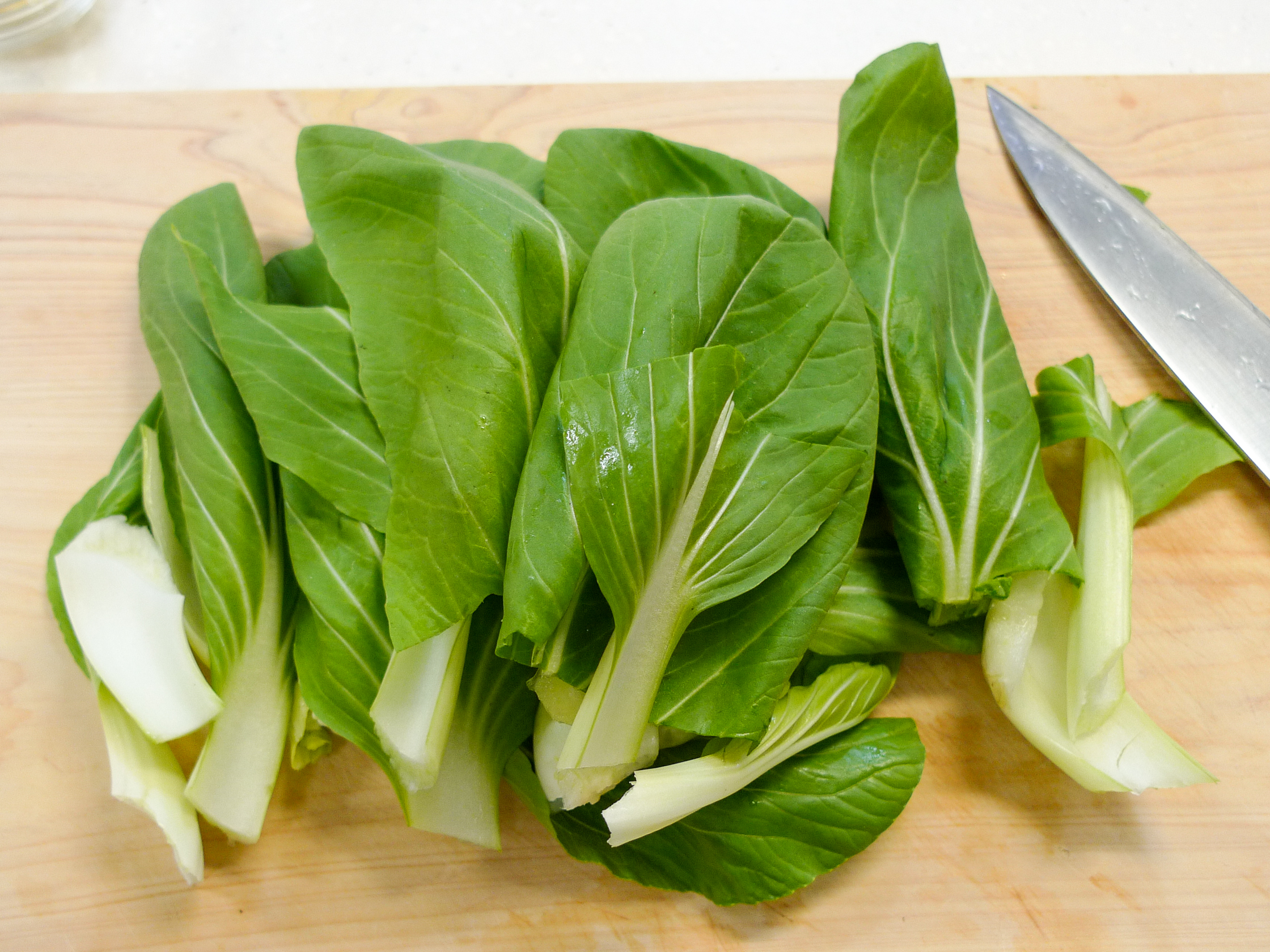 ② チンゲン菜は根を切り取り5㎝長さに切ります