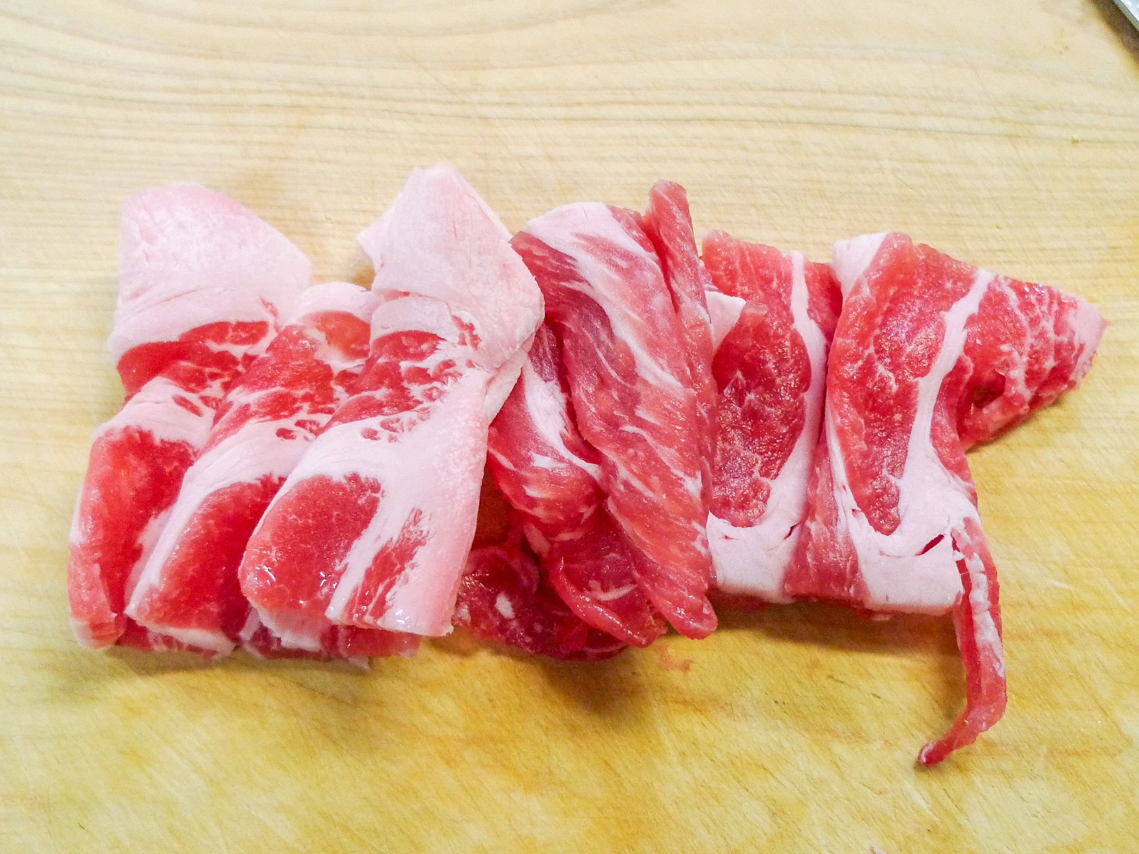 はい、チンゲン菜が少しと豚肉が少し余っていたので
