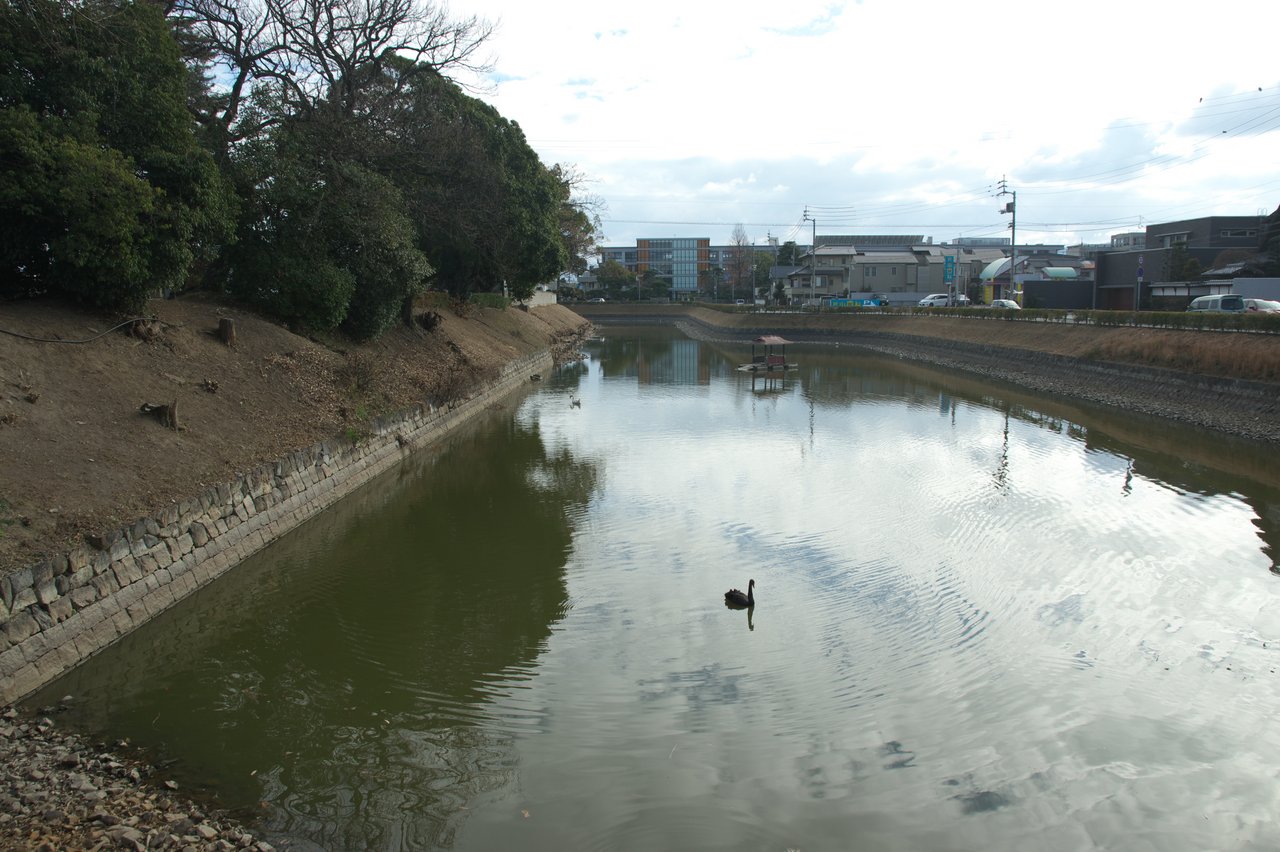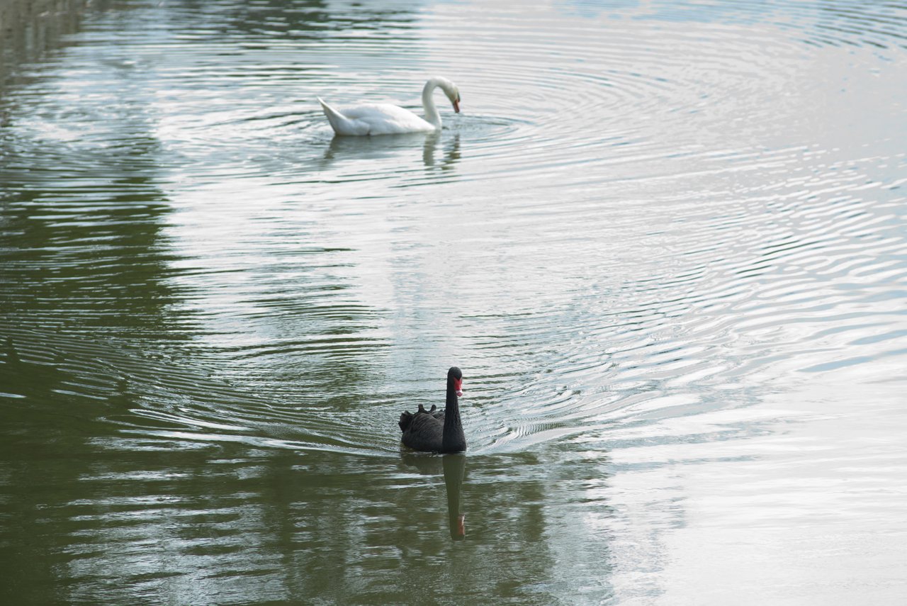駐車場の近くのお堀にコブハクチョウさんとコクチョウさん。