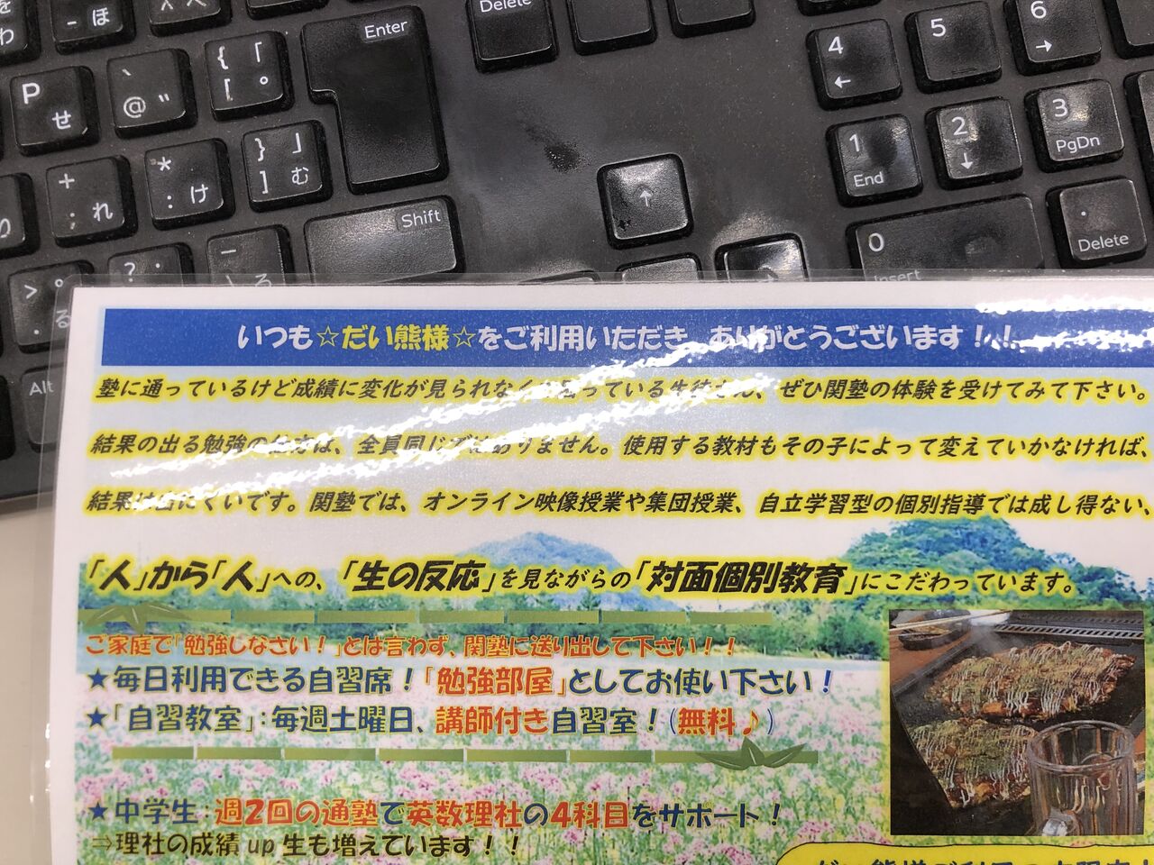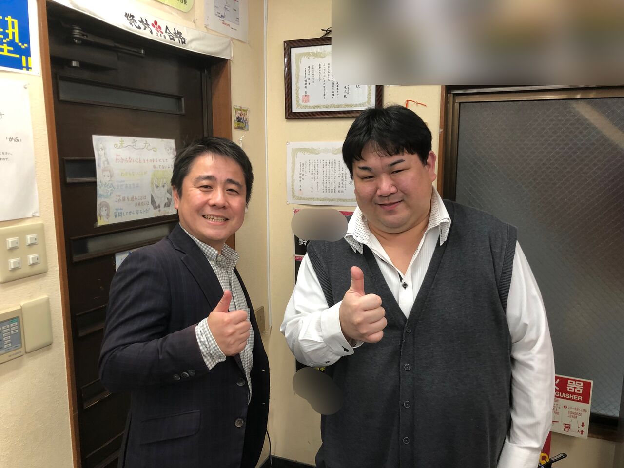 以前講師の皆さんと食事に伺った際、関塾の広告を壁に貼って下さるという、