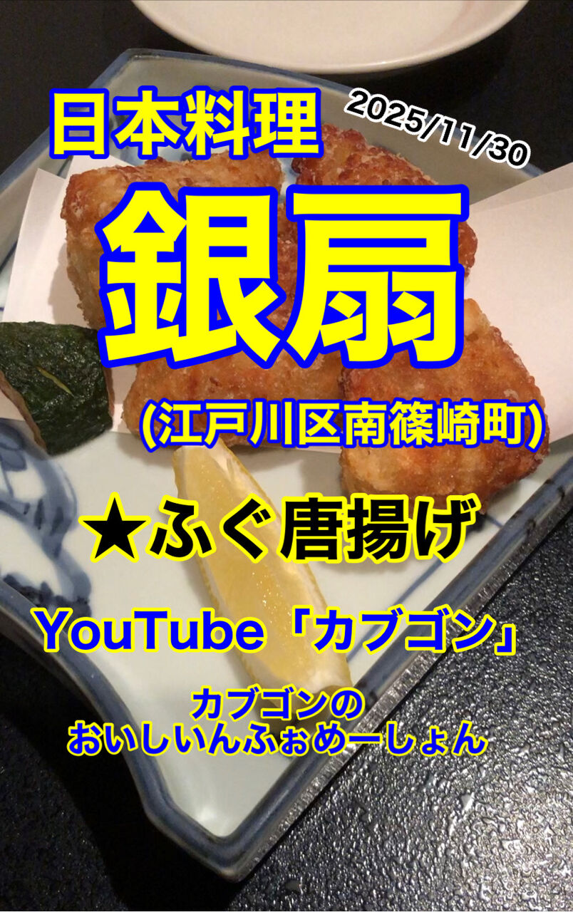 大好きな「日本料理 銀扇」さんに、家族で行ってきました。2025年の忘年会です。ここはタクシーで10分以内で行けますので、タクシーで行けばお酒も楽しむことができます。予約段階で2階のターブル個室をお願いしておきました。いつもながら、とても落ち着くお部屋です。雰囲気最高。良いのは雰囲気だけでなく、接客、お料理も最高です。今回いただいたのは、「大海老の塩焼き」「お刺身盛り合わせ」「海鮮サラダ」「青海苔玉子焼き」「角煮」「天ぷら盛り合わせ」「鴨の鉄板焼き」「季節の煮物」「鶏のから揚げ」「海老しんじょう」「ふぐの唐揚げ」「和牛ステーキ「土鍋炊き鯛めし」です!動画にはビールとコーラしかありませんが、ドリンクもかなりたくさん飲みました(笑)全員満腹、満足のまま帰路につきました♪今回も大変美味しくいただきました(^^)MVPトップ3を決めるとしましたら、1位「大海老の塩焼き」⇒2位「ふぐの唐揚げ」⇒3位「土鍋炊き鯛めし」=「鴨の鉄板焼き」です!これらはカブゴンが心からおススメするメニューですので、行かれた方はぜひお召し上がりください♪最後に、うちのみぃちゃんも登場しています(=^・^=)ごちそうさまでした!