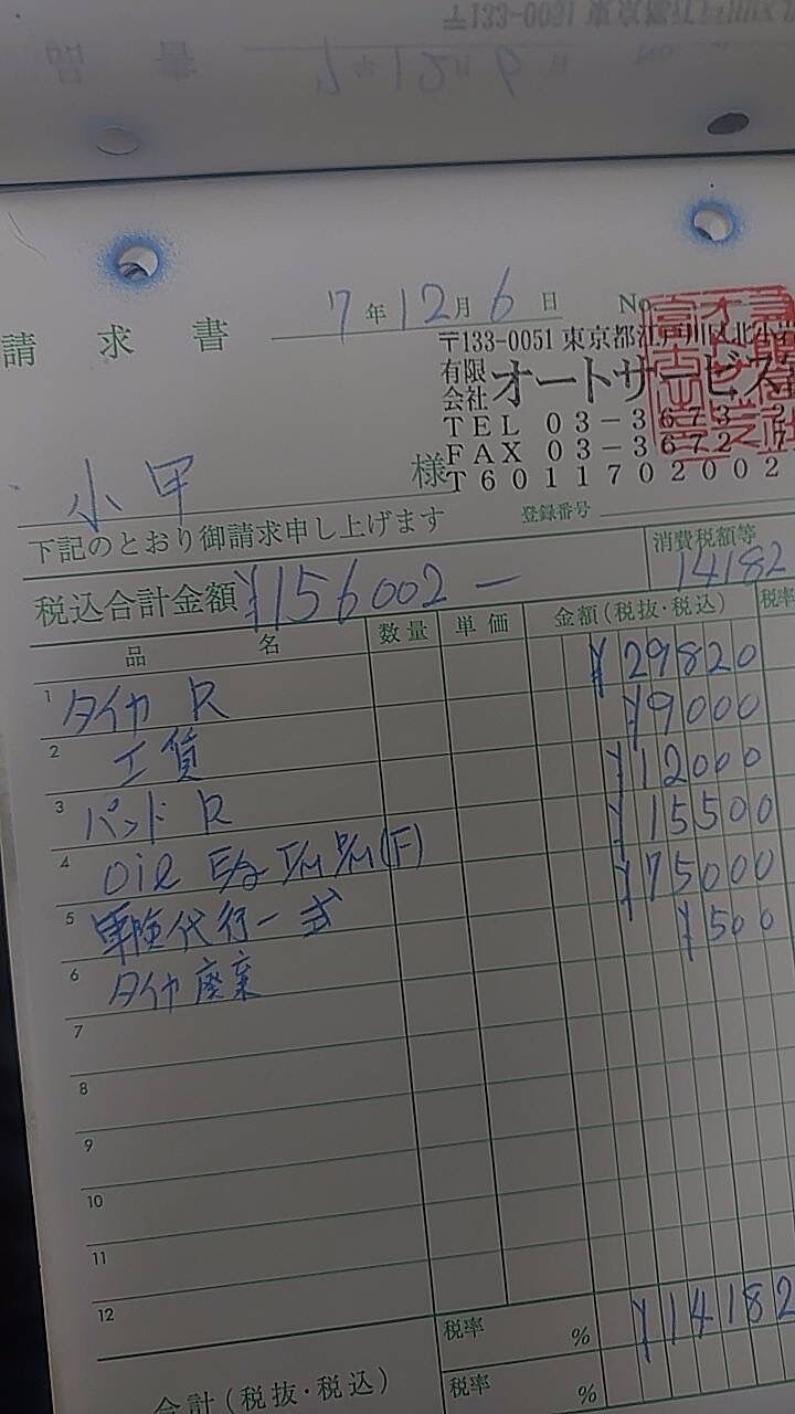 今回はリアタイヤの交換があったので、結構金額が上がった模様です。