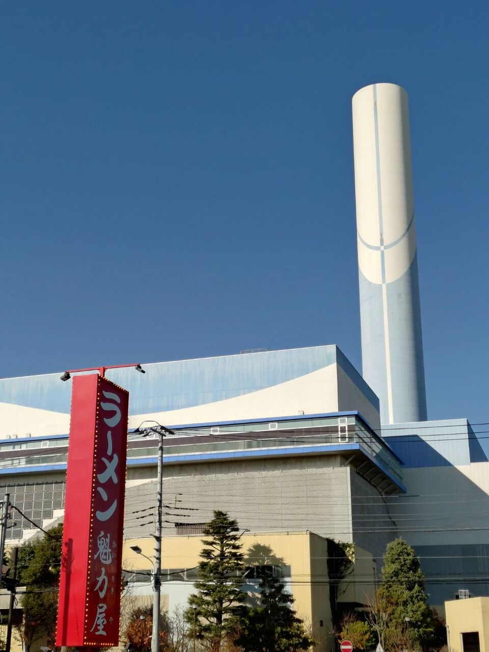 葛飾区水元にあります魁力屋の裏側には、清掃工場(ごみ処理場)があります。