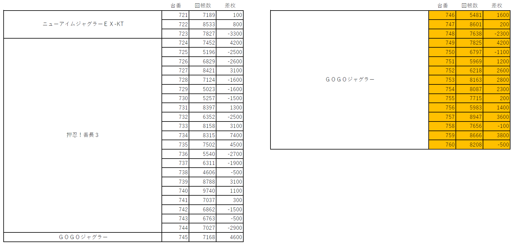 凱旋と番長3から5000枚オーバーが各4台