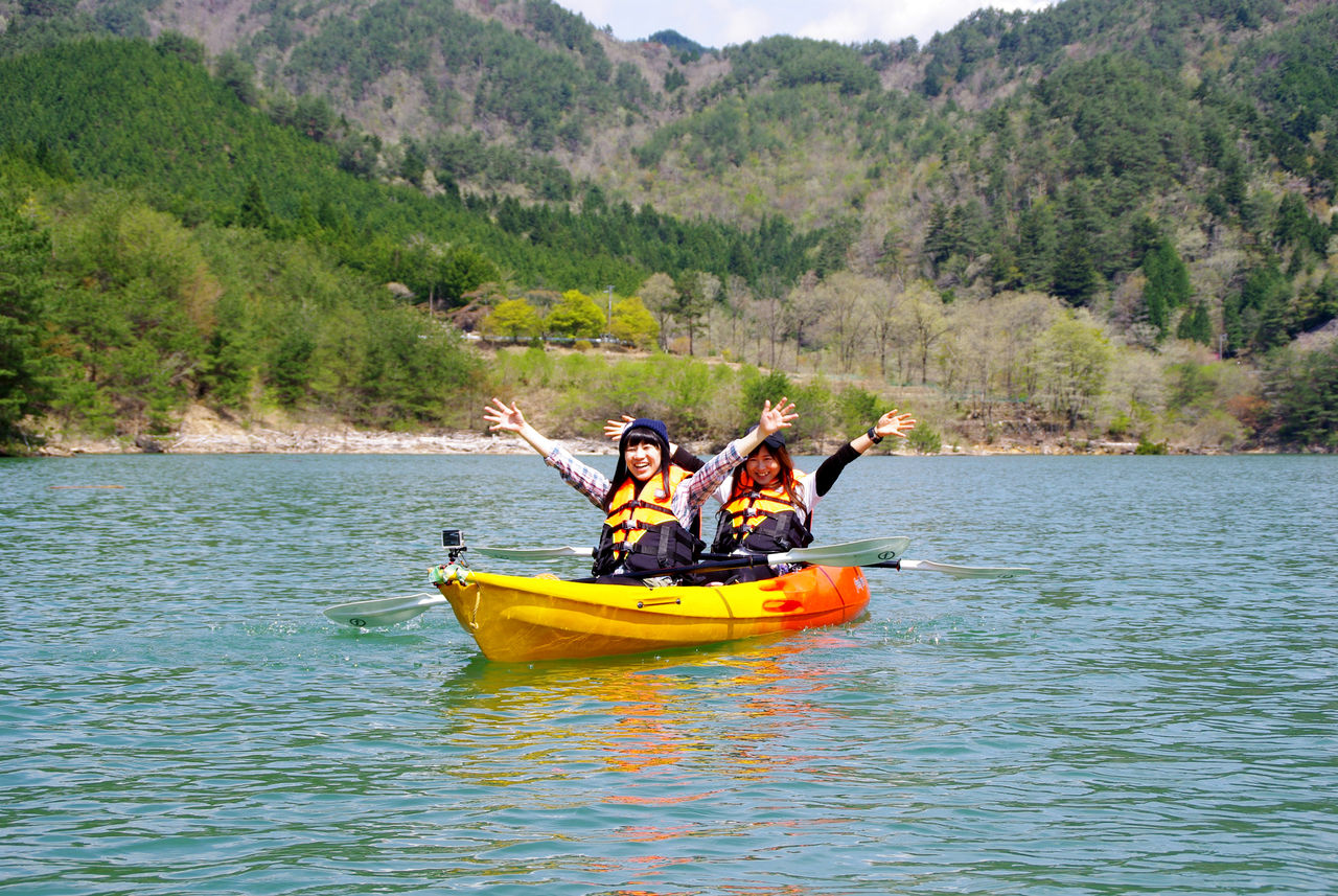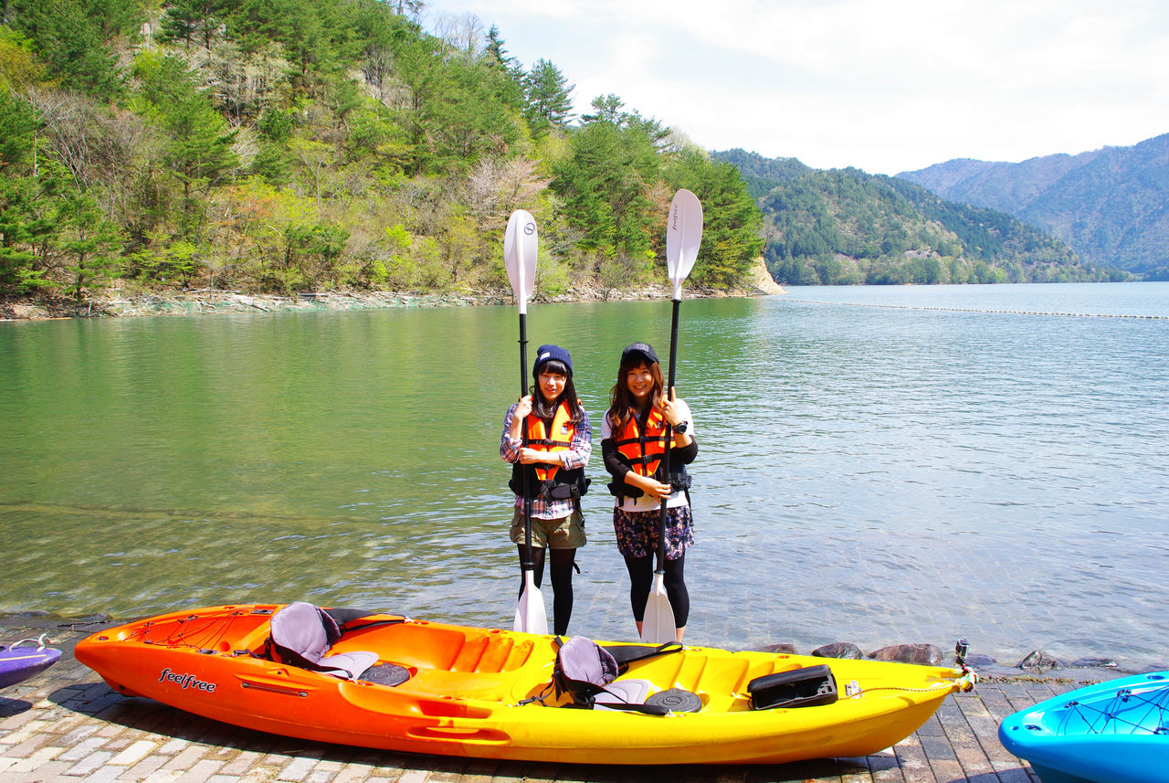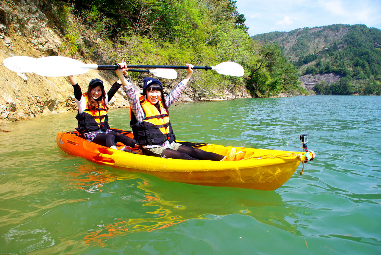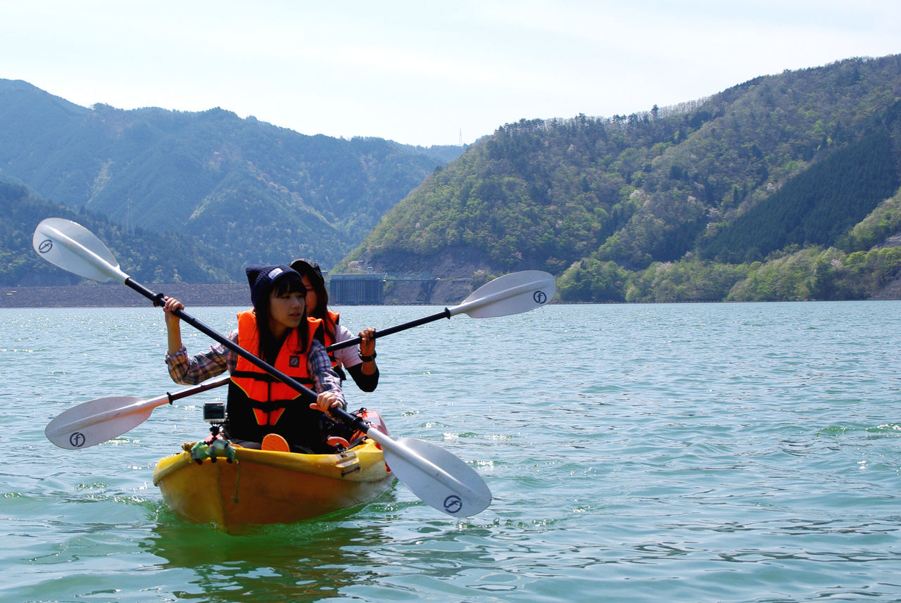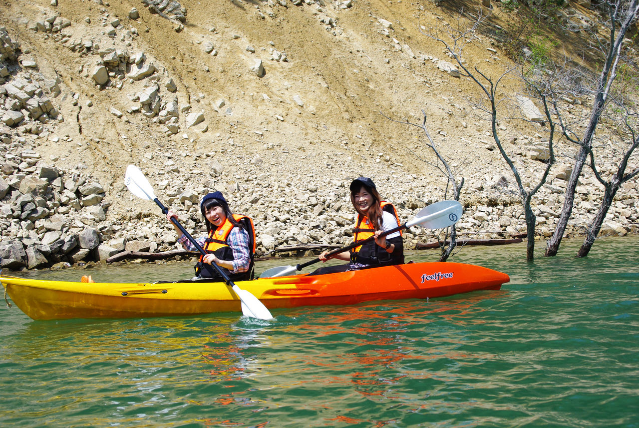 カヤック本体をはじめ漕ぐために必要なパドル、救命道具などは全部、こちらで準備。元オリンピック強化選手の<名門カヤック大学>伊藤来氏がパドルの握り方から丁寧にご案内します。