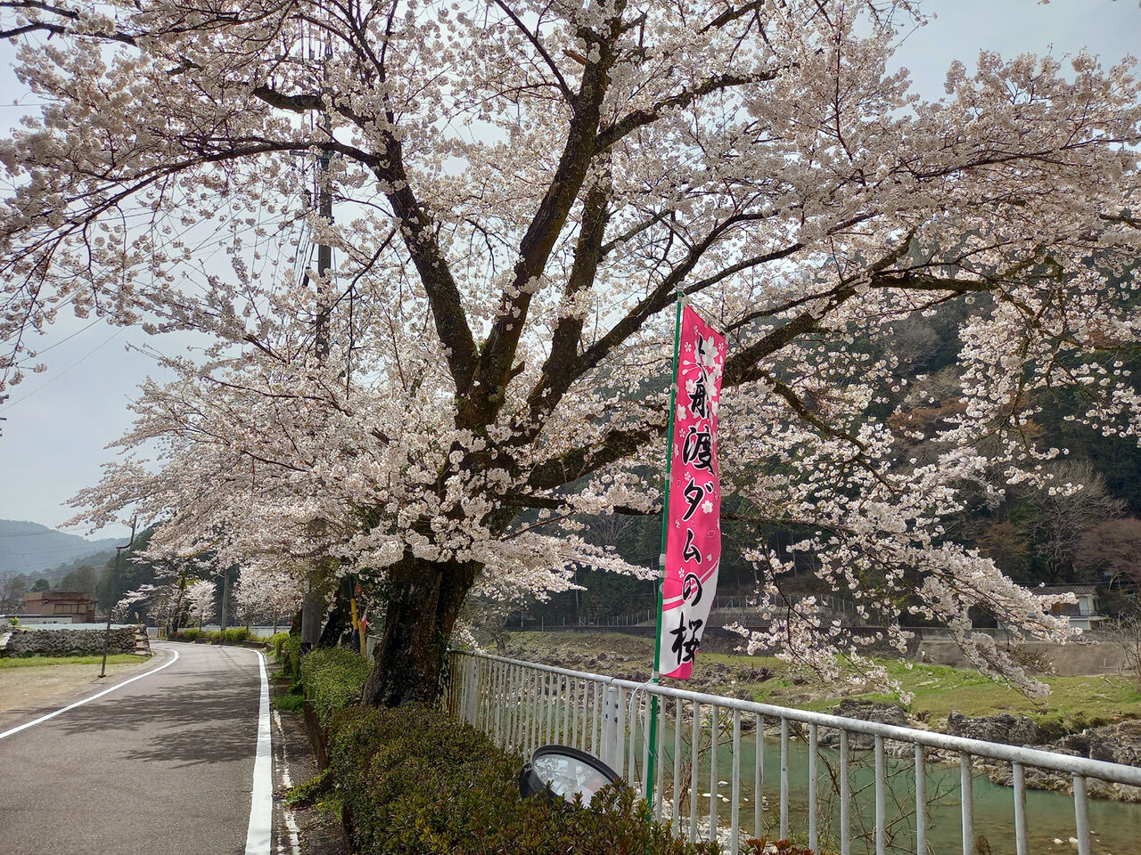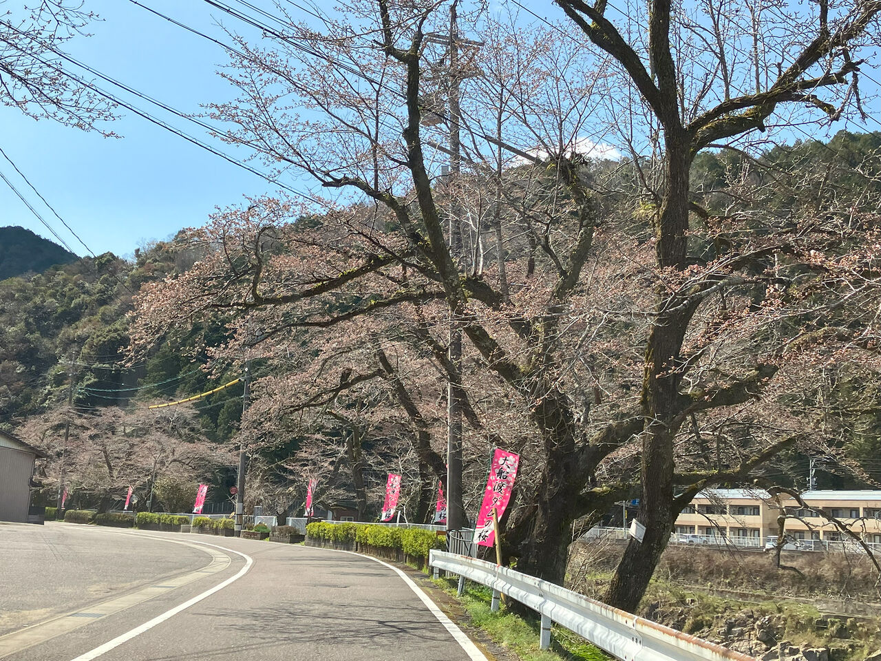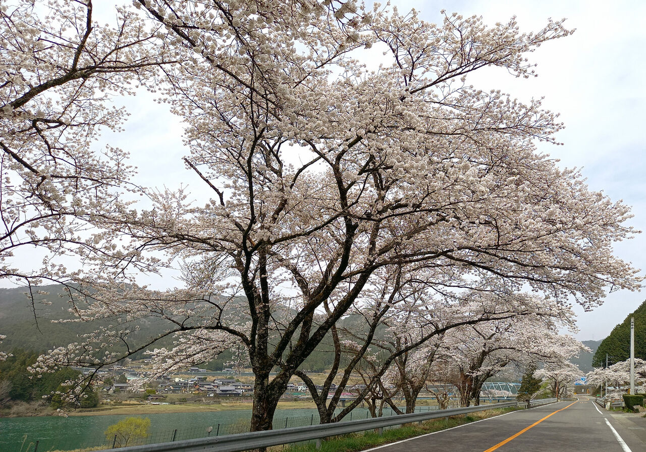 金山から八坂湖畔桜までの道中、県道86号線の桜は今が満開です