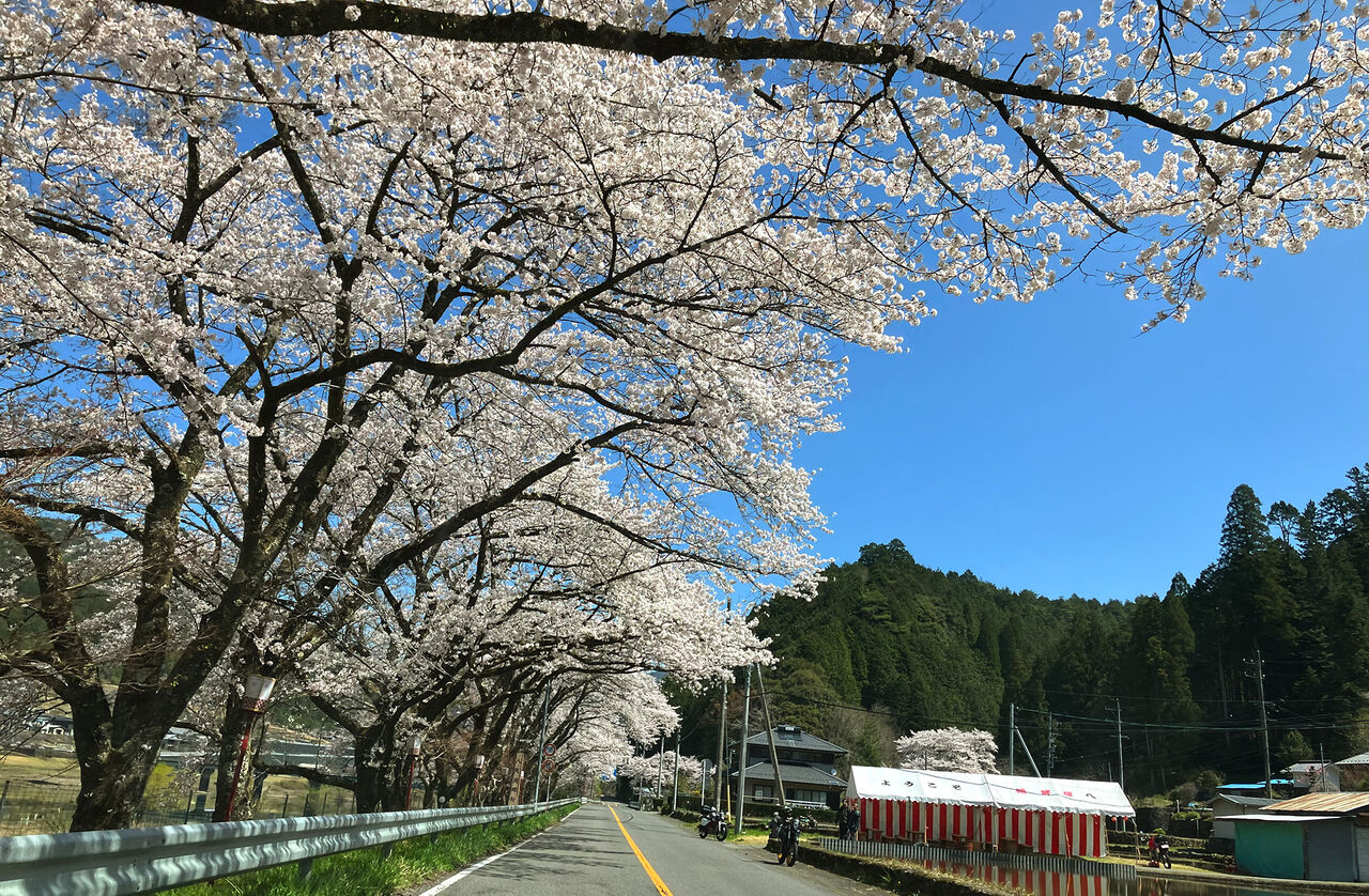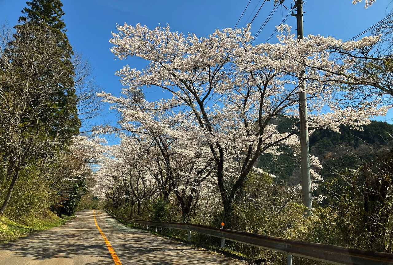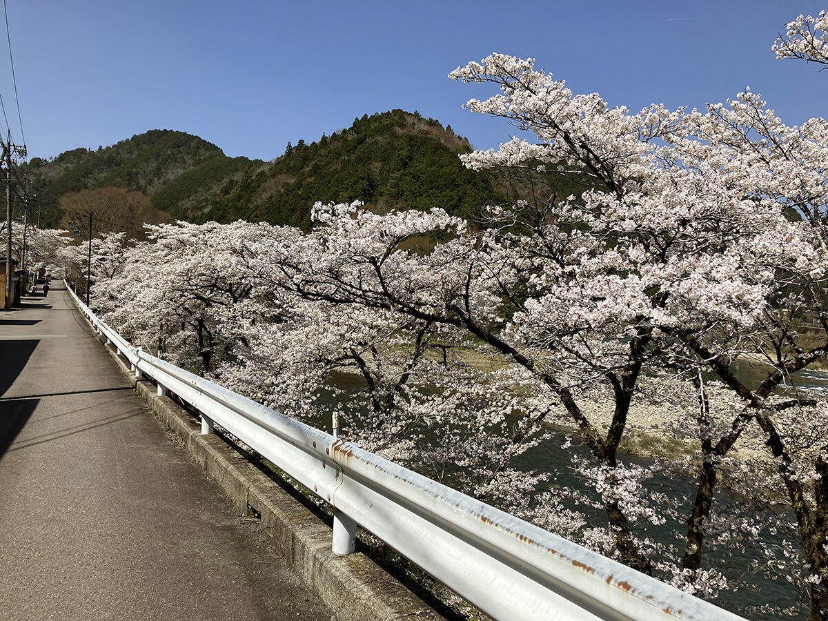 金山から八坂湖畔桜までの道中、県道86号線の桜は今が満開です