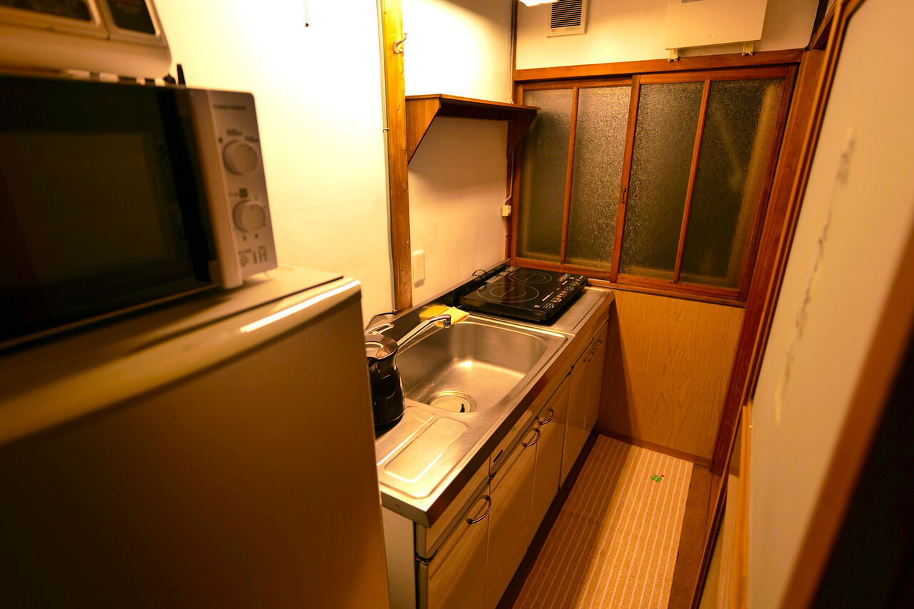 共用スペース(リビングルーム)のキッチンでは自炊ができ、