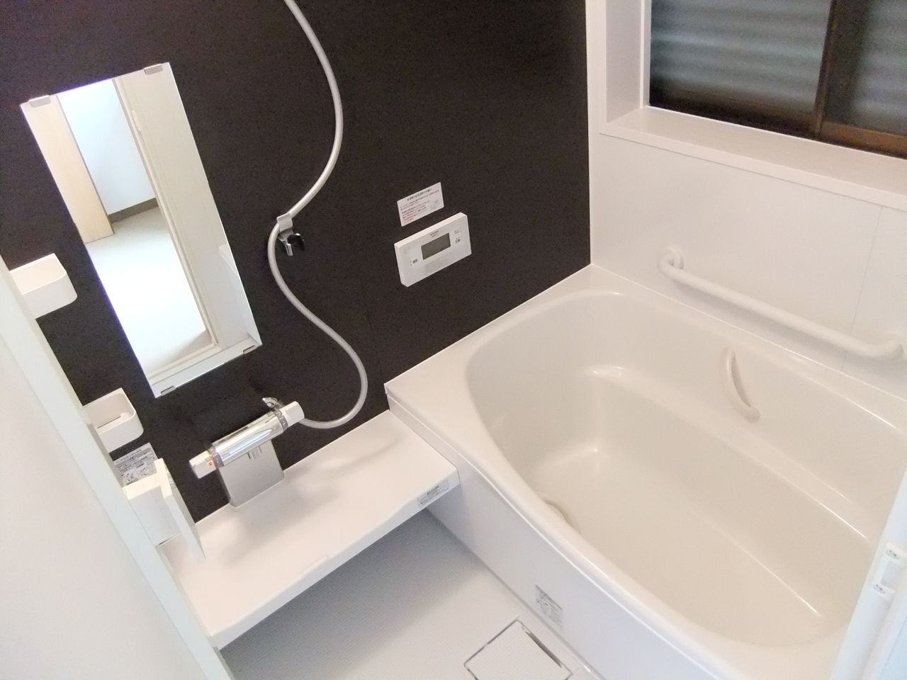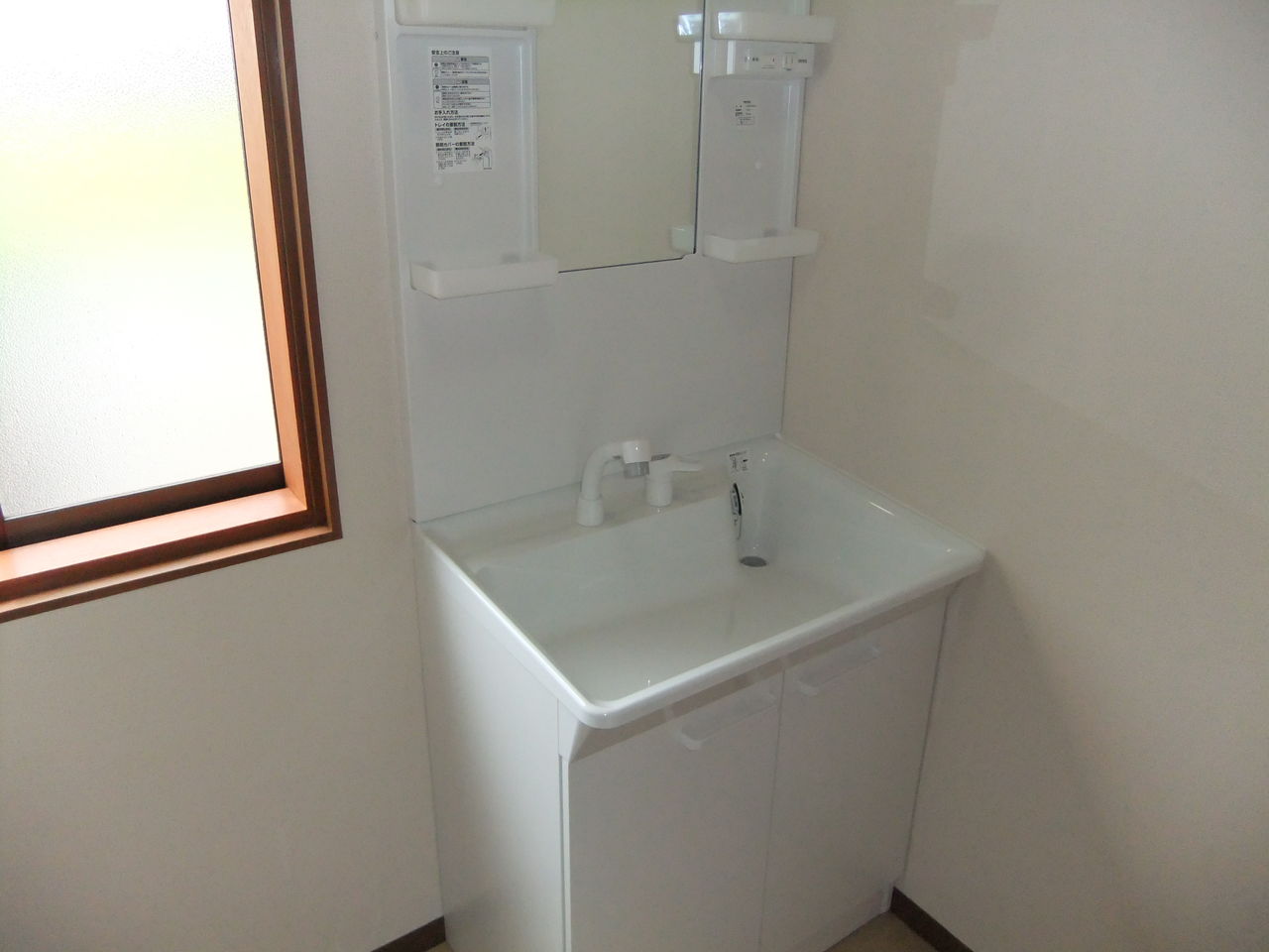 新設された洗面化粧台と浴室です
