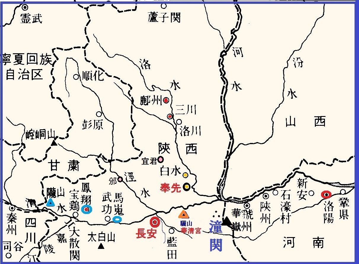 杜甫は鳳翔からごしゅう鄜州まで約200キロの道を、閏八月の初めから半月ばかりかかって、馬は与えられなかったために、途中で馬を借りるまでは徒歩で、何人かの下僕を供にして麟遊県―邠州-宜君県-鄜州という経路で帰っていった。