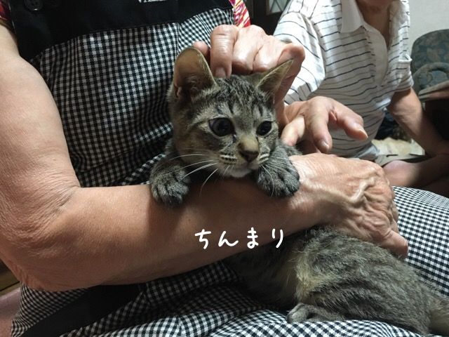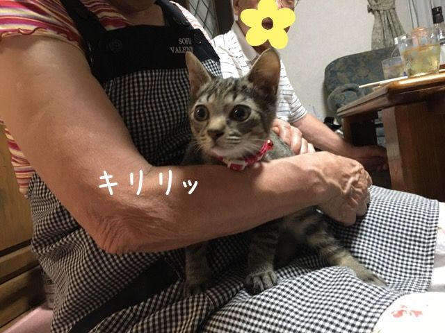 おかさんの腕の中にいるこのニャンコ‥