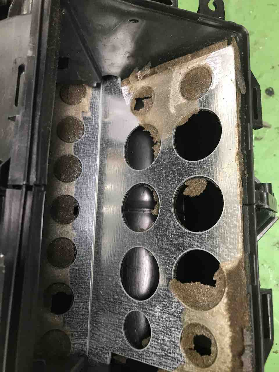 風の流れを切り替える弁が作動しても穴開きなので機能していない状態