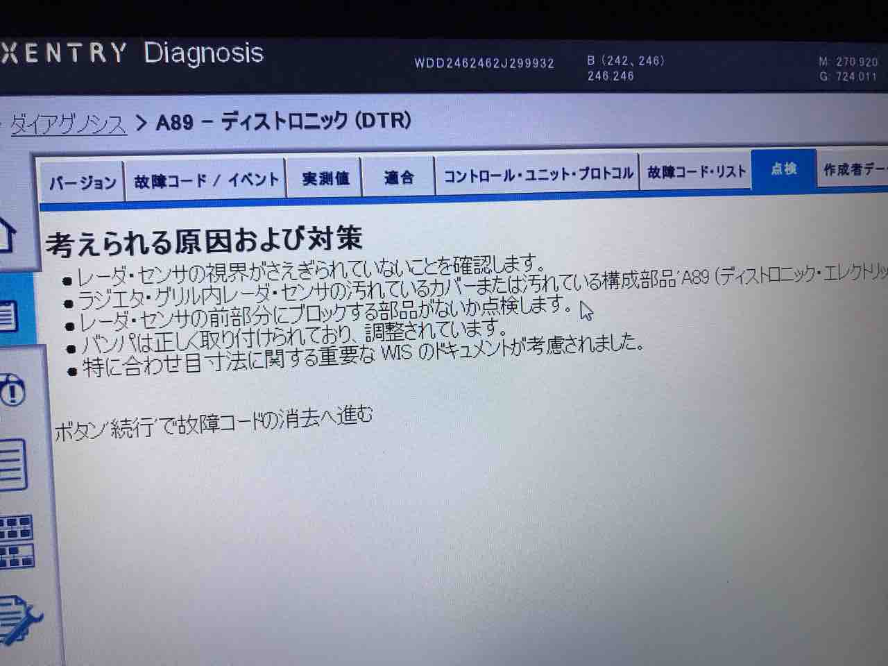 レーダーセンサーの不具合はあるものの、単発らしいので置いておく