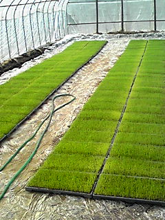 2009年03月16日 芽が出た〜 先日もみをまいた稲が そろそろ芽が出る頃だと思い行っみると しっかり芽が出てました〜 今度はこの上に新聞紙を乗せて その上に新聞紙が飛ばないように 薄い網を敷いて また何日か待ちます さ〜この次はどうなってのか お楽しみに〜