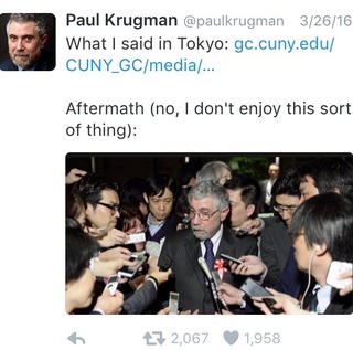 Paul Krugman: Meeting with Japanese officials, 22/33/16の英語の全文はこちら。