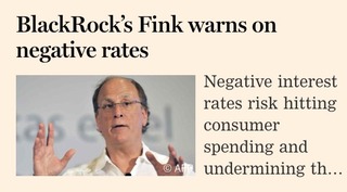 英FTの11日の一面はFears grow over effect of negative rates on economy(マイナス金利政策の経済への影響に不安広がる)として、資産運用会社BlackRockの Larry Fink会長の発言を紹介しています。