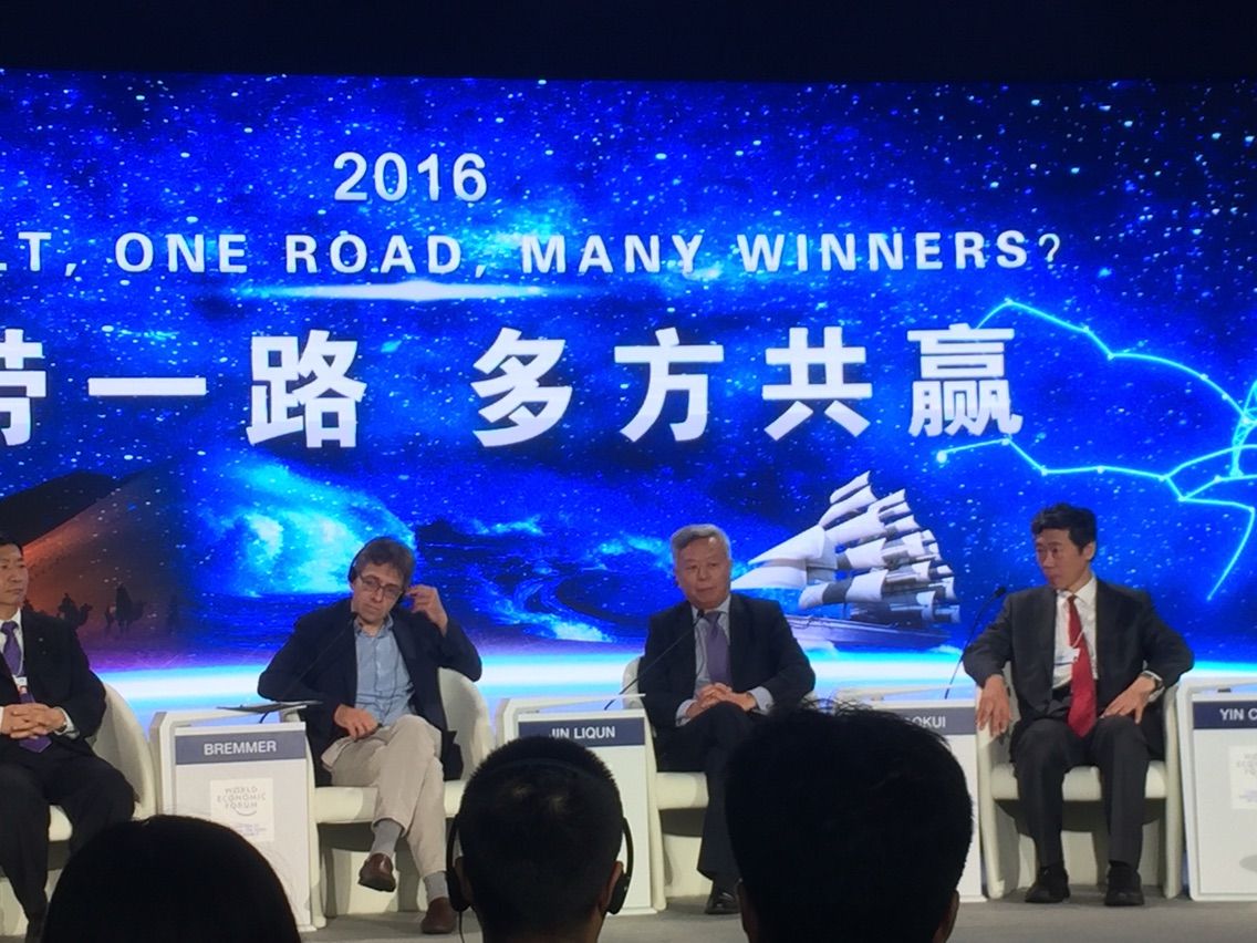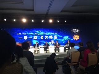 サマーダボスは、Brexit 一色の感でしたが、ほかのセッションもご紹介させてください。中国の一帯一路 (One Belt One Road)のセッションには、AIIB=アジアインフラ投資銀行 の金立群 (Jin Liqun)総裁も登場。