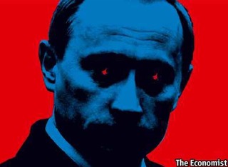 今週のThe Economistの表紙は、何だかハロウィンを彷彿とさせます。ドラキュラ風、いやダースベーダー風のプーチン大統領のオメメには真っ赤な戦闘機。オデコには一言