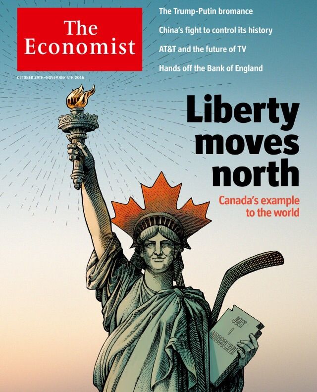 今週のThe Economistはカナダを特集しています。移民の受け入れにも、自由貿易にも積極的なカナダこそ、自由の女神が世界に照らす「自由」を名乗るに相応しいと言いたいようです。
