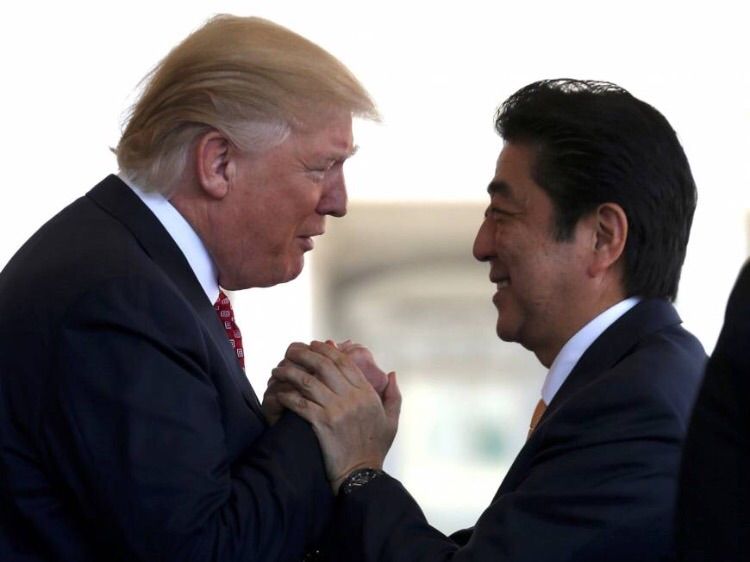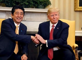 Donald Trump mocked for "awkward" handshake with Japanese prime minister Shinzo Abe(トランプ大統領、安倍首相との"居心地悪そうな"握手をいじられる)は伝えています。