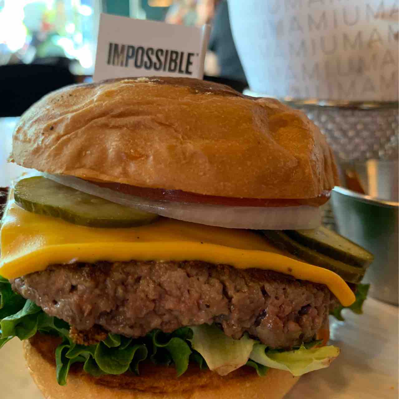 サンタモニカにあるこのお店ではImpossible Foods社の代替肉を使用。パイオニア的存在ですが、今では来店客の50%前後はImpossible Burger(あり得ないバーガー)を注文するそうです🍔