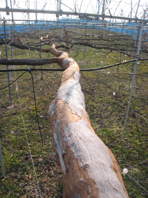 だんな様は、種無し処理ブドウ(以下、種無し)の【短梢(たんしょう)剪定】に取り掛かりました。