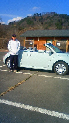 小さな田舎、しかもこんな山の上に、きれいな色のオープンカーが来ると