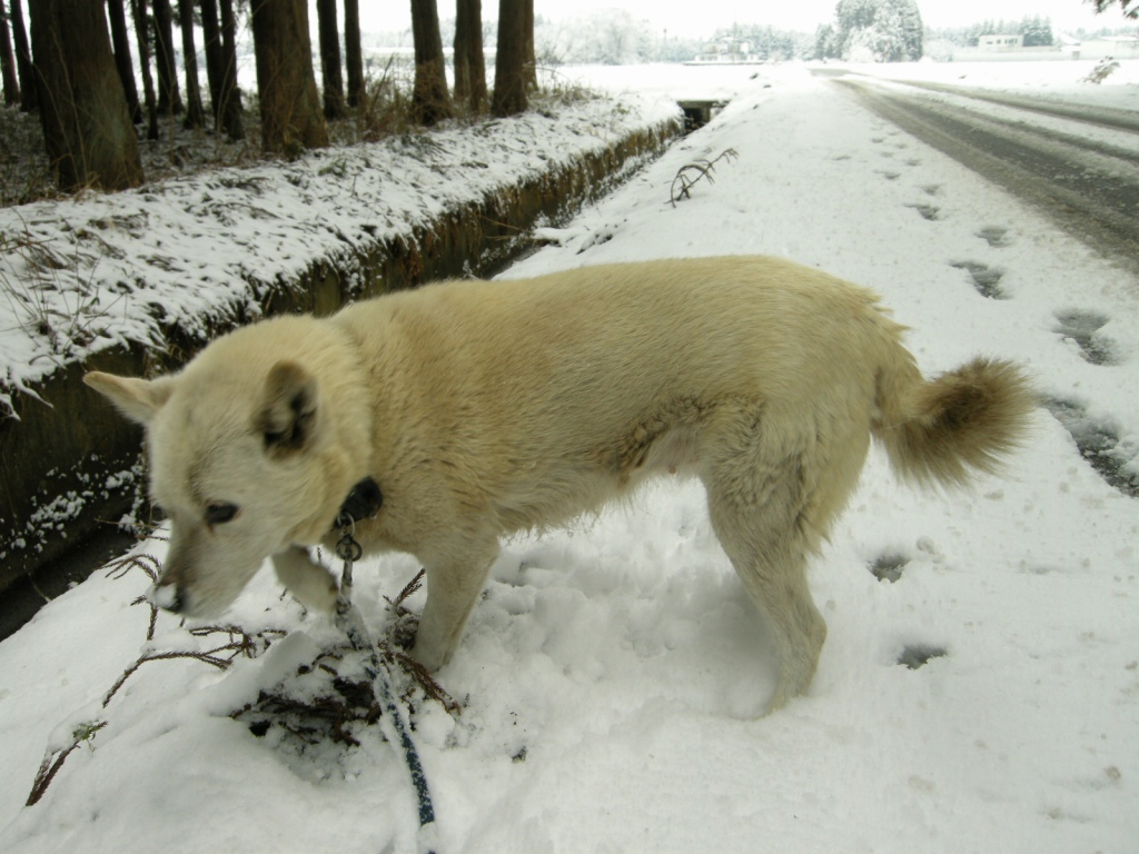 雪の大好きなムクは、しきりに鼻で雪をほじくって