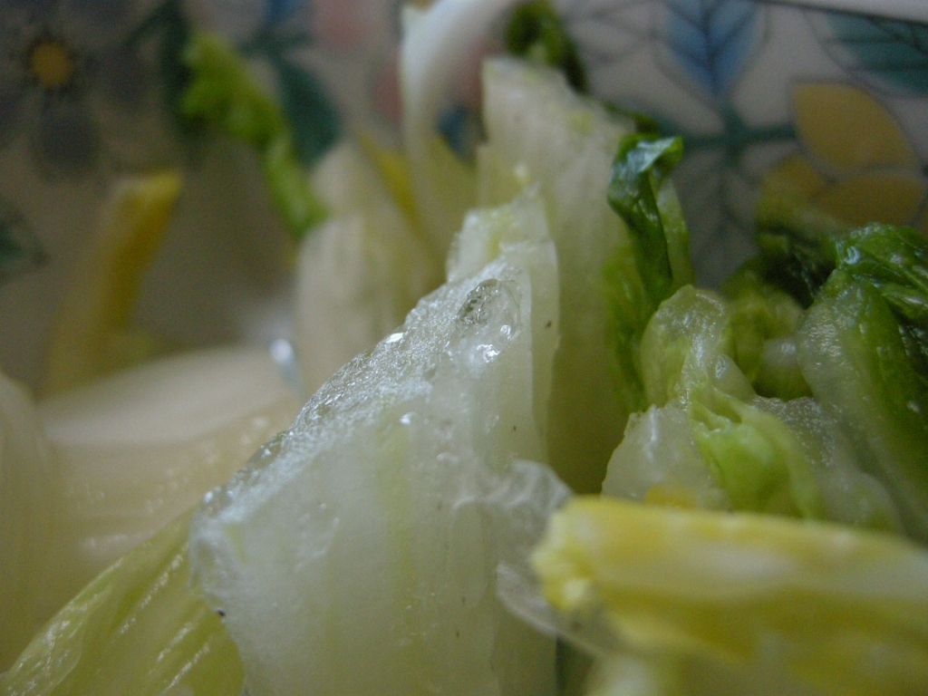 漬物小屋に白菜の漬物を取りに行ったら、漬物桶に