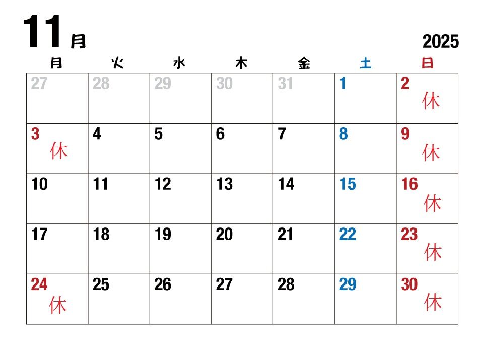 2025年11月の店休日は下記のとおりです