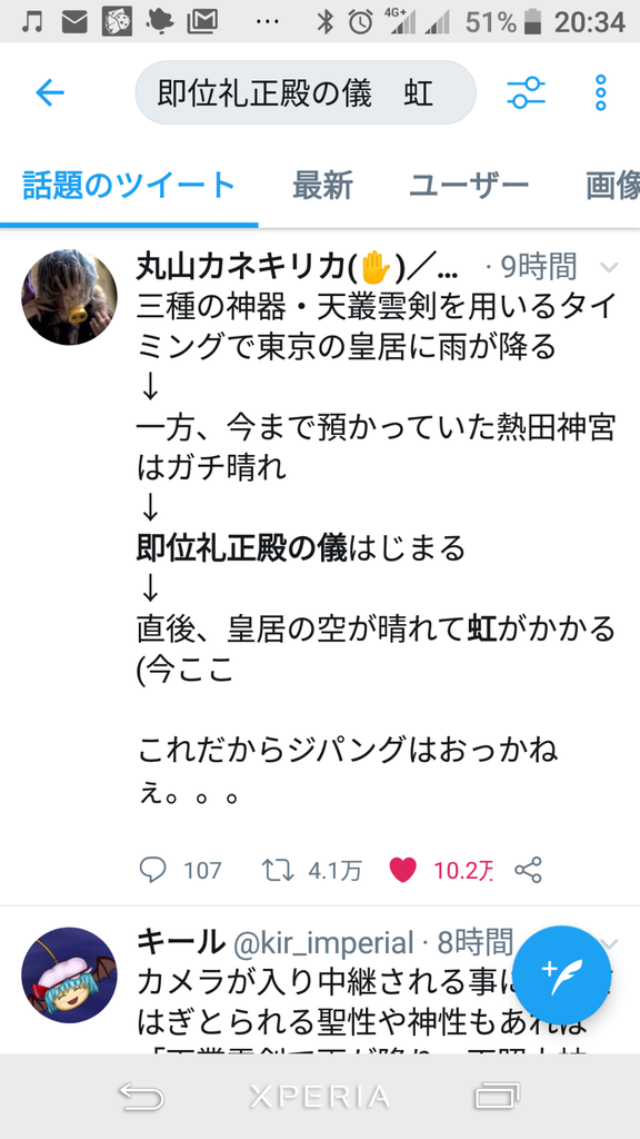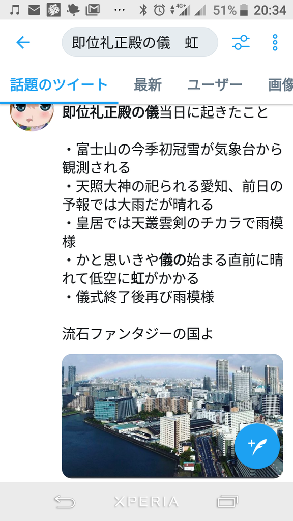 タイは祭日じゃなかったので、午後の休憩時間にYou Tubeにアップされていた天皇陛下の「宣明」の部分をチョコ見して、あとはツイッター確認したら、なんと!!朝から雨が降っていた東京、儀式が始まる直前に雨がやんで虹がかかった、ということでツイッター民が盛り上がっているではありませんかw(゚o゚)w !