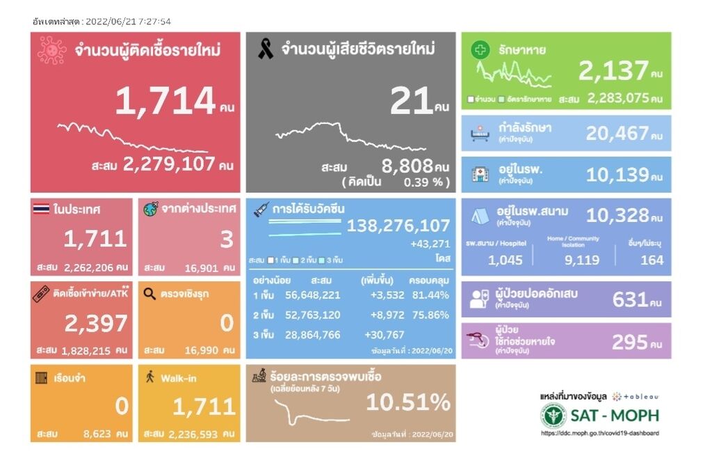 本日発表の新規感染者1,714人、完治者2,137人、死者21人、ATK陽性は2,397人です。