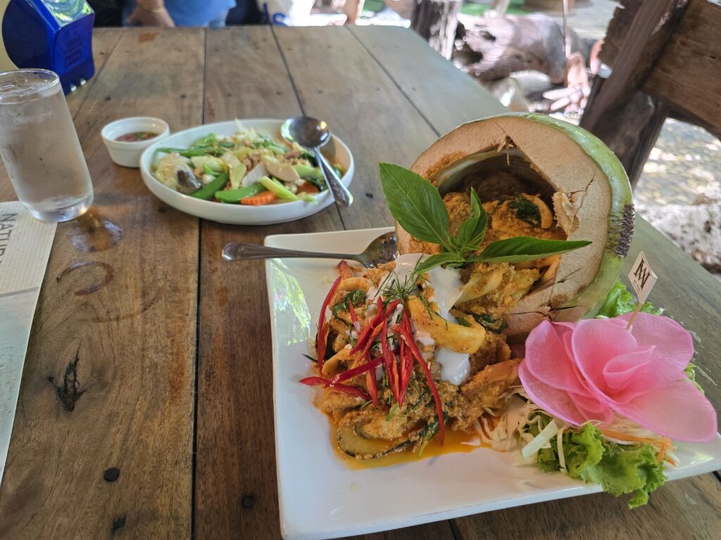 でも、かりびーたちはお店の子のおススメでタイ料理にして、ココナツのホーモック頼んだら、