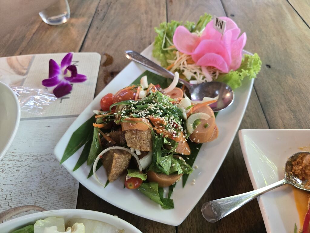 カリカリポークとソーセージのヤム。見た目も味もいい(´∀`*)。